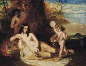 A Reclining Female Nude On A Red Draped Lied With A Landscape Beyond