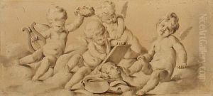 A Putto Collecting Flowers, In An Oval Mount