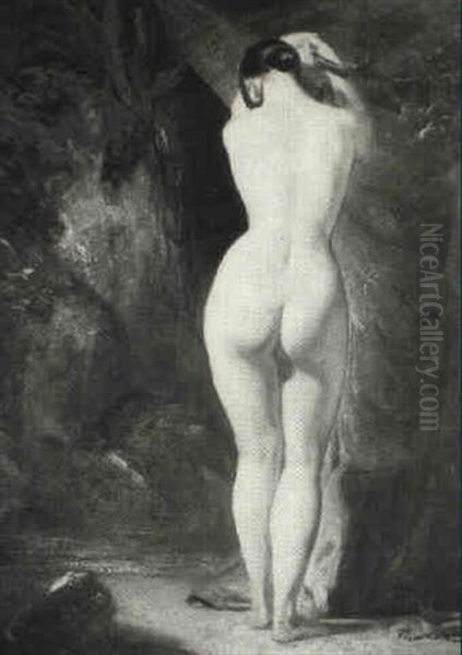 Study Of A Female Nude Standing Full Length Before A Waterfall
