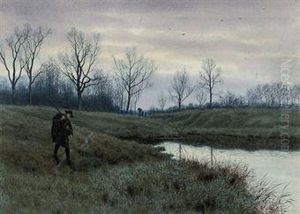 The distant church spire of All Saints Church, St. Ives, from the River Ouse , 1898