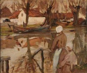 Terrace Scenes Lady Seated At A Table & An Empty Table