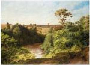 Extensive River Landscape With Cottages