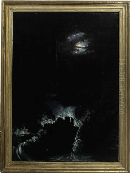 A Shipwreck By A Ruin Under The Moonlight