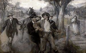 Street Scene With Newspaper Vendors And Boys Playing A Game Of Spinner
