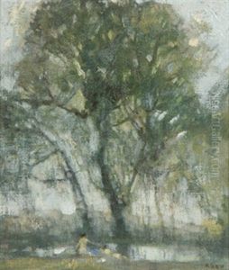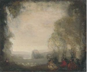 Figures Seated Beneath Trees In A Landscape