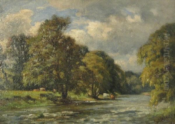 Cattle At The Riverbank Under A Stormysky