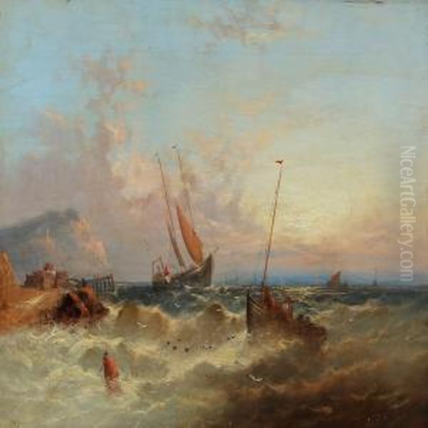 Fishing Ships Along A Coast Oil Painting - William Harry Williamson