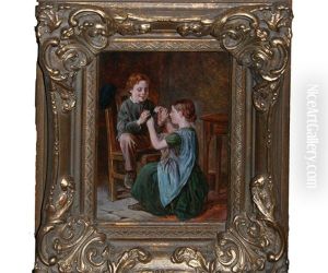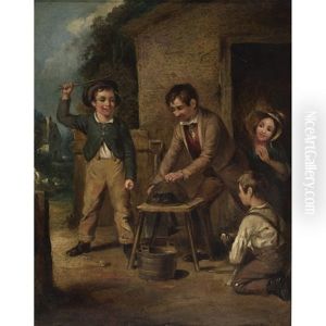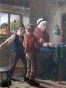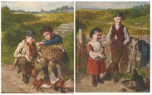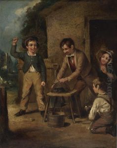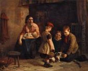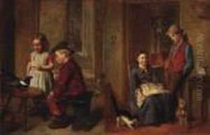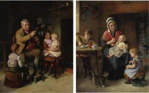 A Sailor Mending Nets, A Child Playing With A Kitten At His Feet (+ Three Children On A Path Before A Cottage; 2 Works)