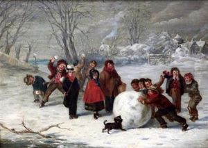 Children Building A Giant Snowball