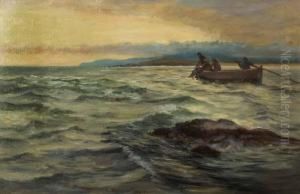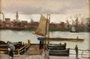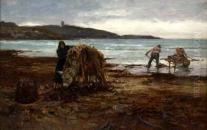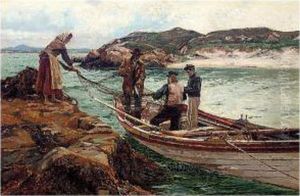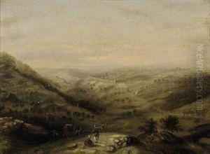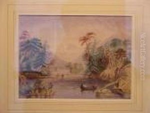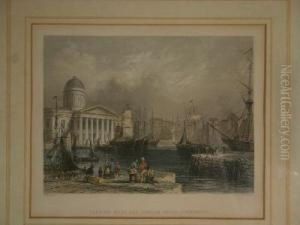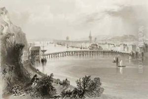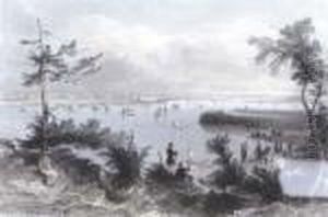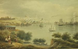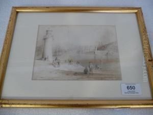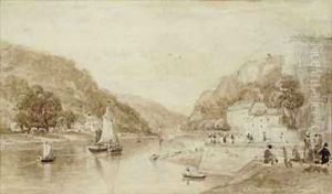 Figures On A River Bank, A Ruined Abbey Beyond (illustrated)