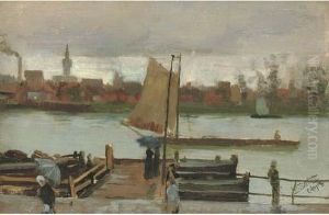 River Landscape With Figures And Boats