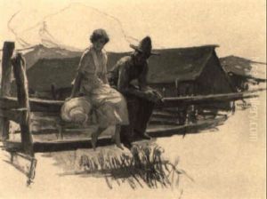 Frightened Women Waiting (illus. For Saturday Evening Post)