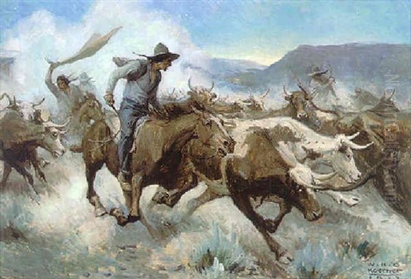 Bring the timeless beauty of William Henry Dethlef Koerner's Cattle Stampede into your home with a handmade oil painting reproduction. Carefully recreated on canvas by skilled artists using traditional techniques, this piece captures the delicate brushwork, subtle light, and vibrant color of the original masterpiece. With museum-level quality and rich texture, it brings elegance and artistic depth to any space. Enjoy free shipping and make this masterpiece a part of your personal collection.