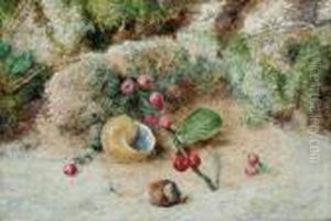 Plums, Apples And A Bird's Nest On A Mossy Bank