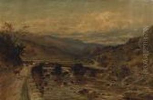 Welsh Mountain Landscape With Figures, Horse And Cart