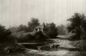 A River Landscape With Cattle Watering