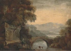 Italianate Landscape With Mountains, River, Ruins, And Foreground Allegori