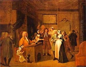 Woman Swearing a Child to a Grave Citizen from The Works of Hogarth