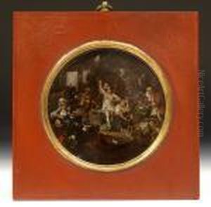 A Monk Drunk In A Tavern - The Reverse Of The Panel Painted Withthe Bust Of A Man; And A Monk Selling Relics In A Tavern