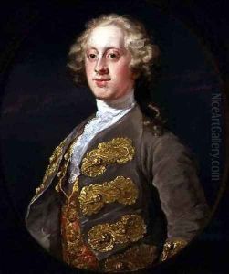 Portrait of Gustavus Hamilton (1710-1746), 2nd Viscount Boyne, small full-length, in a brown frock coat and blue waistcoat