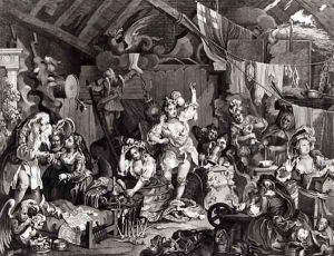 The Industrious Prentice out of his Time and Married to his Masters Daughter plate VI of Industry and Idleness