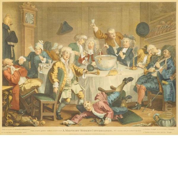 A Midnight Modern Conversation Oil Painting by William Hogarth