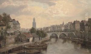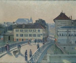 Figures on a bridge in a continental town
