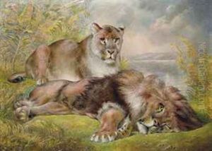 Faithful Friends, A Border Collie And Two Terriers In A Landscape