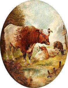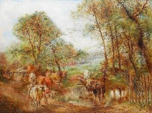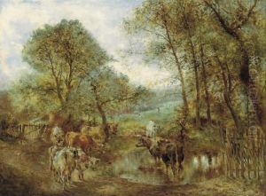 Cattle, Donkey And Sheep In A Pastoral Landscape