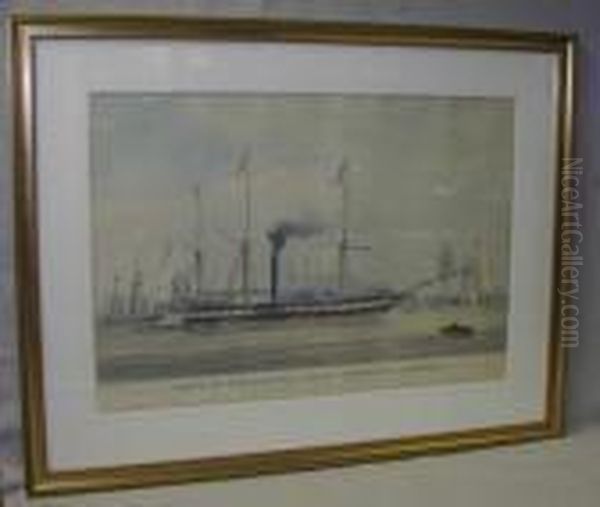 Ships Of The General Steam Navigation Companyoff Brunswick Wharf, Blackwall. Featuring The "clarence" And The"leith". Coloured Aquatint By Edward Duncan Published By Huggins1840.