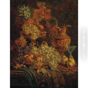 Grapes, Pineapple, Pear, Apples, Peach, Plum And Redcurrants, On A Mossy Bank