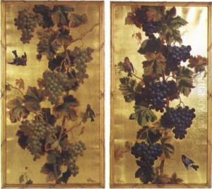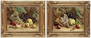 Grapes, Apples And A Peach On A Mossy Bank (+ Still Life Of Apples And A Pear; Pair)