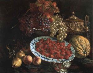 A Silver-gilt Cup, Strawberries And Other Fruit On Draped Table