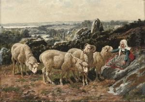 A Shepherd With His Flock At Dusk