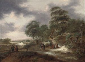 A Wooded Landscape With Figures On A Track