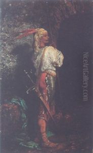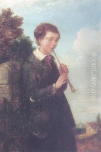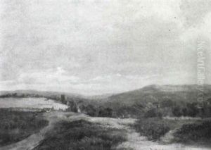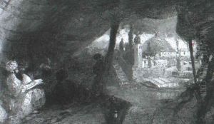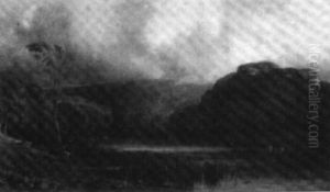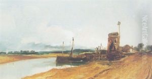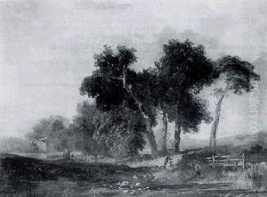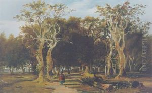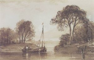 Figure Seated On The Banks Of A River With Thatched Cottage In Wooded Glade