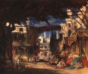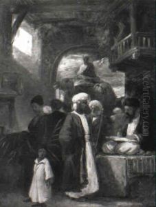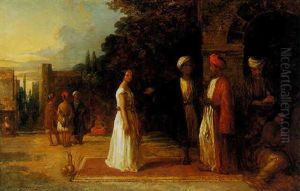 A Turkish Gentleman In An Interior With A Woman Playing The Mandolin