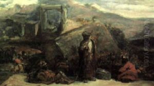 Fra En Oase I Orkenen, I Forgrunden Tre Beduiner