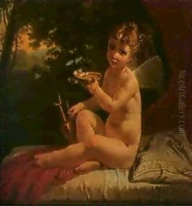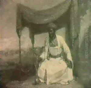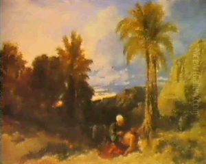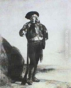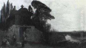 A Wooded River Landscape With Figures Fishing From A Bridge