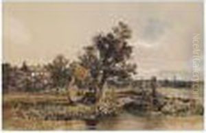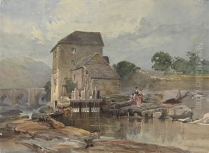 Figures Fishing Near A Watermill