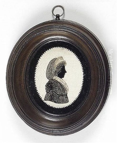 A Lady, Profile To The Right, Wearing Dress, Fichu, Hoop Earring And Bandeau In Her Looped Hair