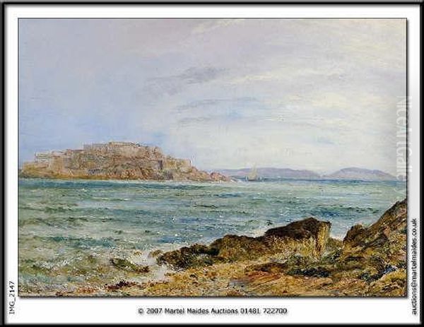 Castle Cornet, Guernsey, From Lavallete Oil On Board, Signed And Inscribed Verso 10.5 X 15in