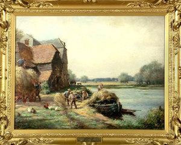 "hay Time" - Workers Loading Hay Onto A Barge