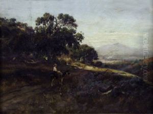 Two Figures In A Landscape At Sunset