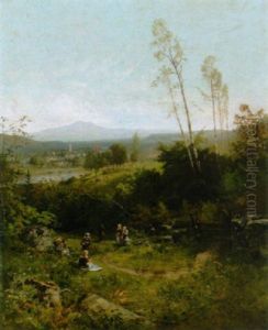 Figures In Oak Glade Landscape