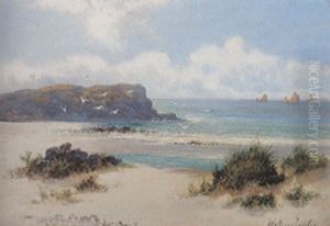 A Girl On A Beach; And A Girl Resting By A Plinth In A Garden