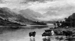 Cattle Watering, Sunset (+ Cattle Grazing, 1919; Pair)