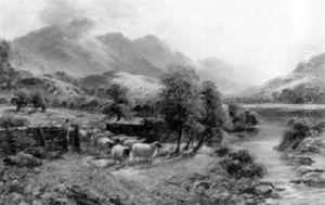 Cottages On The Bank In A Welsh Mountainous Landscape