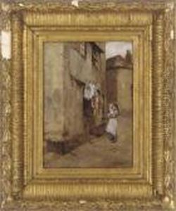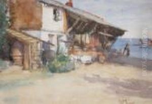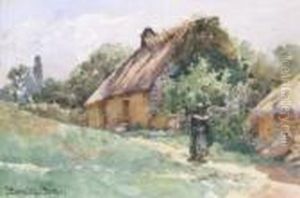 Figure Before Cottages Brittany Inscribed
