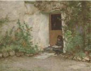 A Girl On A Beach; And A Girl Resting By A Plinth In A Garden